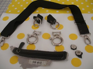 She took out another bag. And she started to lay out hardware for purses: d-rings, big hoops, a shoulder strap with clasps, the magnetic snap, and the zipper from an inner pocket complete with the brand label still attached.