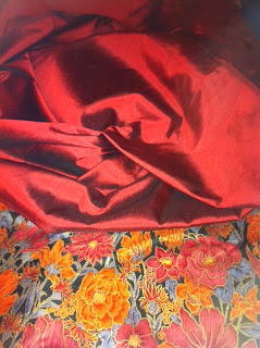 | Chambray denim and light floral Thai silk in case I run out of fabric. |